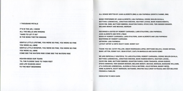 THANK YOU TO: CATHY PELLOW, OMAR RODRIGUEZ-LOPEZ, BRITTANIE DELAVA, CHASE ORTEGA, MARC JETTON, SONNY KAY, CAITLYN MARGULIS & DAVID ROMO”