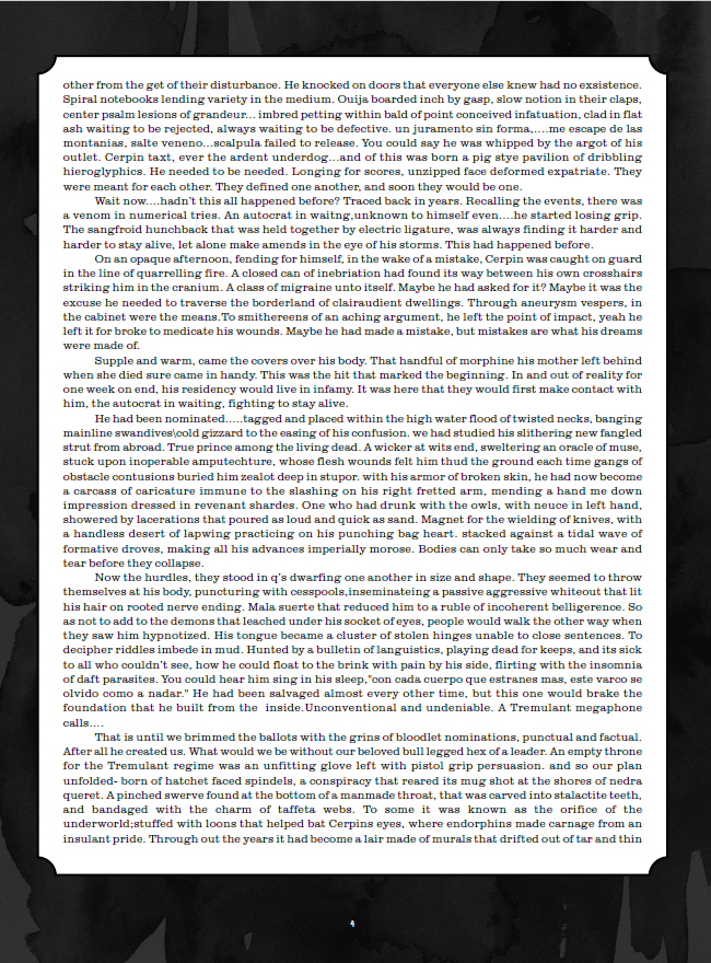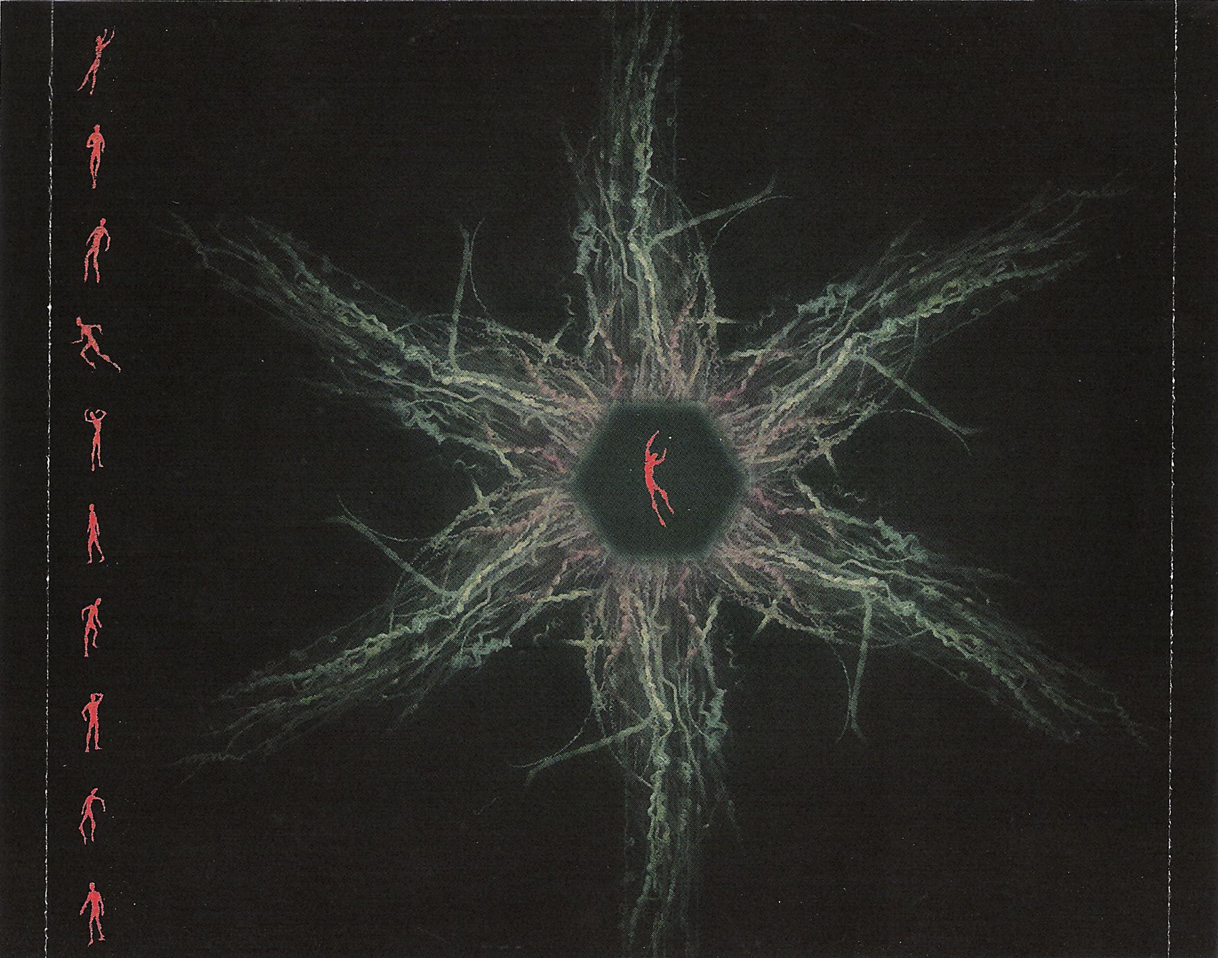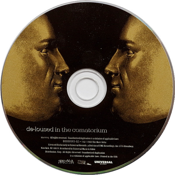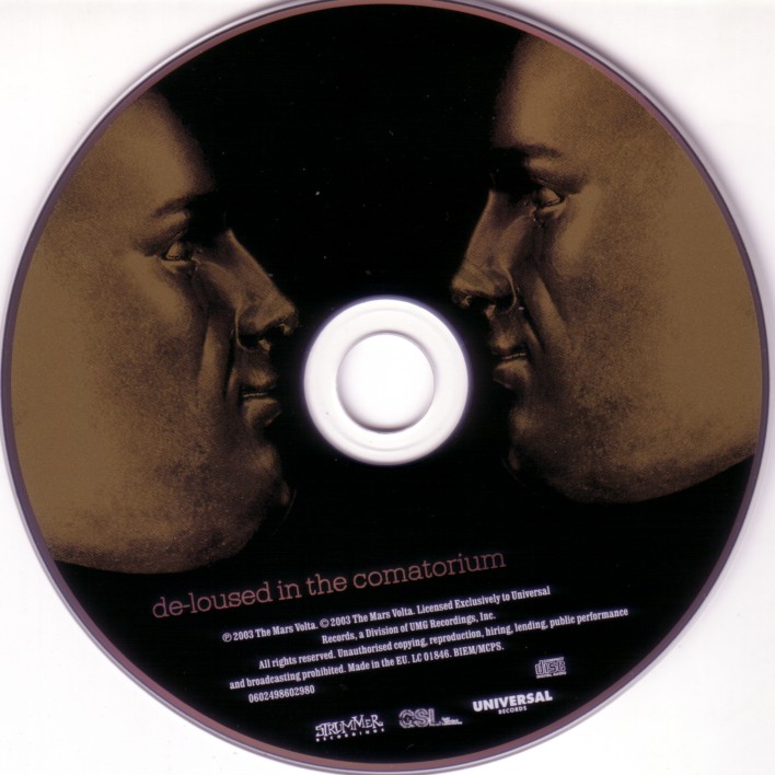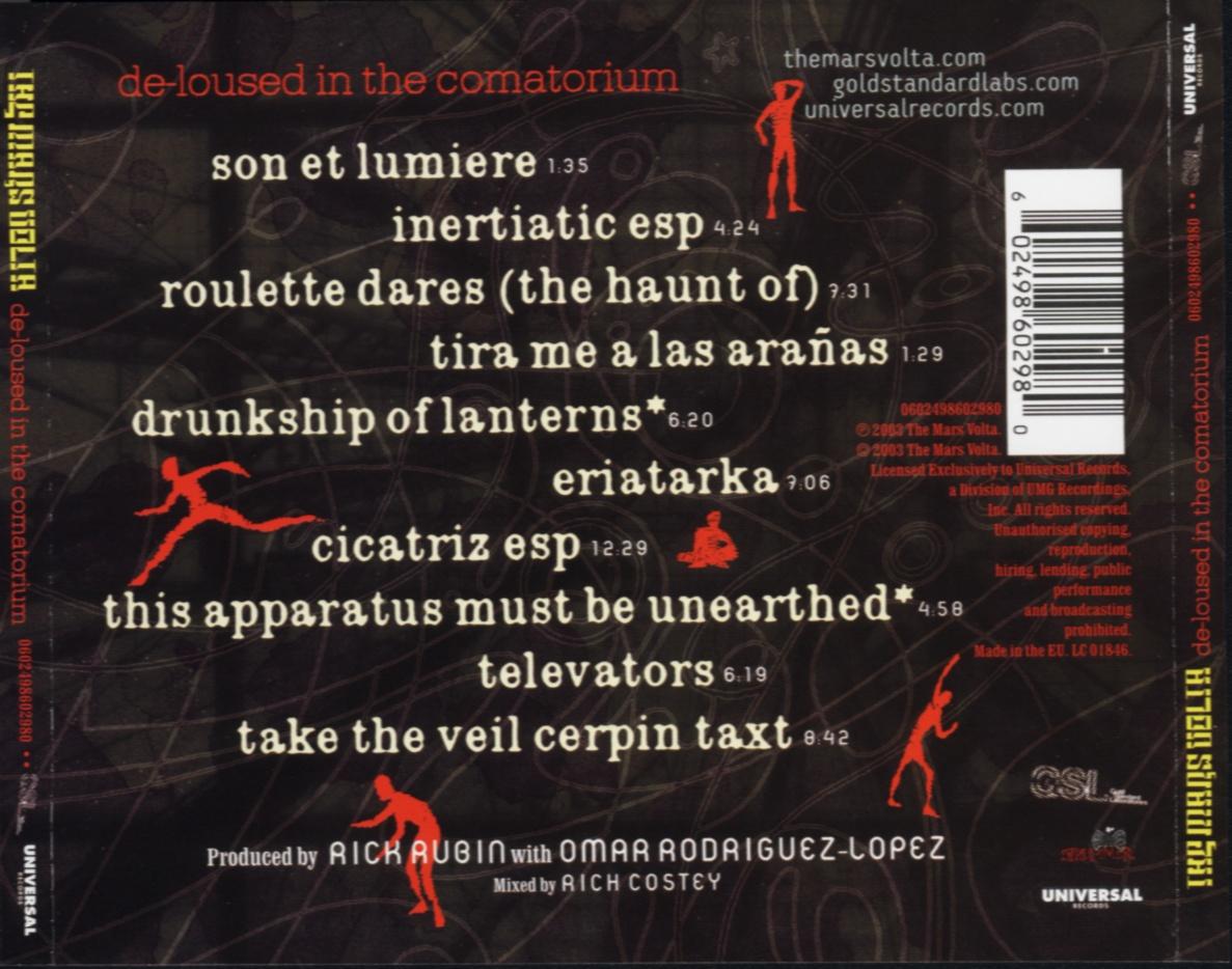 The music contained in De-Loused is distinguished by its enigmatic lyrics, Latin and jazz rhythms, and Omar Rodríguez-López’s frenetic guitar riffs, which are often strongly dissonant. The title of the album is taken from the lyrics of the song “Eunuch Provocateur” on the band’s previous release, Tremulant (meanwhile, “Take the Veil Cerpin Taxt” contains the title of Tremulant). The cover artwork is by Storm Thorgerson.