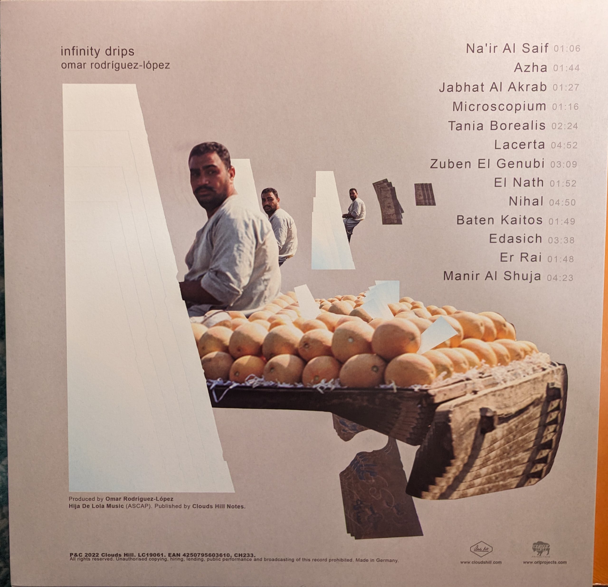 Infinity Drips was originally revealed in the Telesterion book with a different album cover.  It is uncertain if these are the same album.