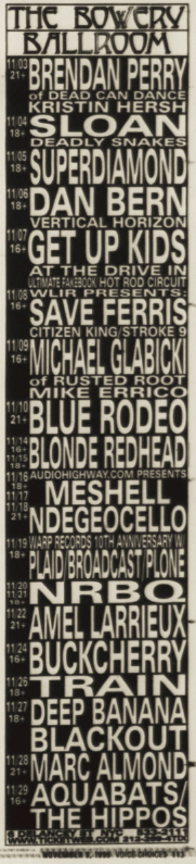 November 07th, 1999 @ The Bowery Ballroom